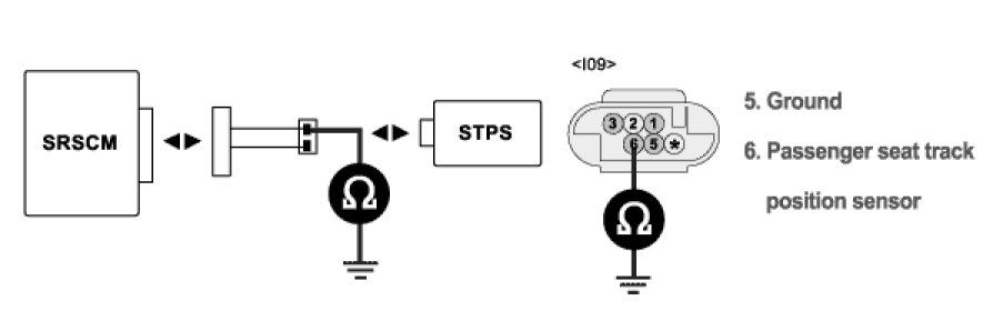4. Measure resistance between terminal "6" of the STPS harness connector and chassis ground.
