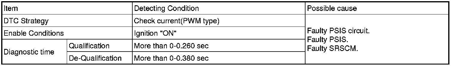 The SRSCM sets DTC B1410 if there is any error in communication between PSIS and SRSCM.