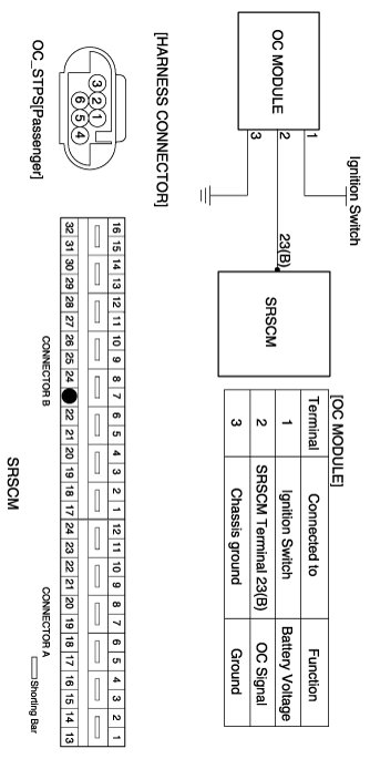- Repair or replace the wiring harness between the OC Sensor and the SRSCM.