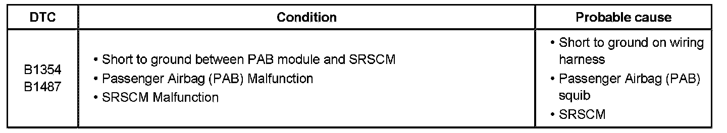 SRSCM sets above DTC(s) if it detects short to ground on the PAB circuit.