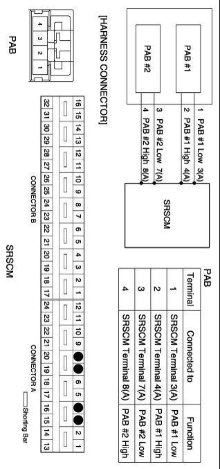 - Repair or replace the wiring harness between the PAB and the SRSCM.