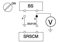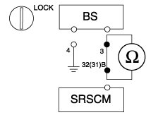 (1) Measure current between the terminal 3 of BS and 32(31) of SRSCM harness connector(B).