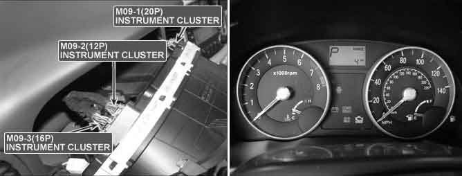 Air bag warning lamp is located at cluster. When key is in 'ignition on' position, SRSCM performs diagnosis of overall air bag system.If there's no fault, air bag. Warning lamp in cluster flickers for a while and then goes out. SRSCM measures voltage of out terminal of warning lamp to check if warning lamp is operated in accordance with signal SRSCM sends.