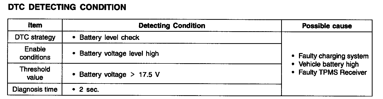 DTC C1127 VEHICLE / TPMS RECEIVER BATTERY HIGH