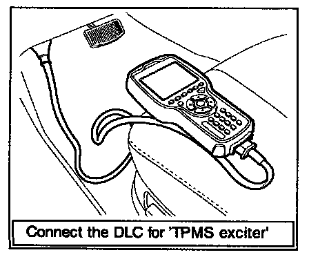 2. Connect 'TPMS exciter' or scan tool to Data Link Connector (DLC).