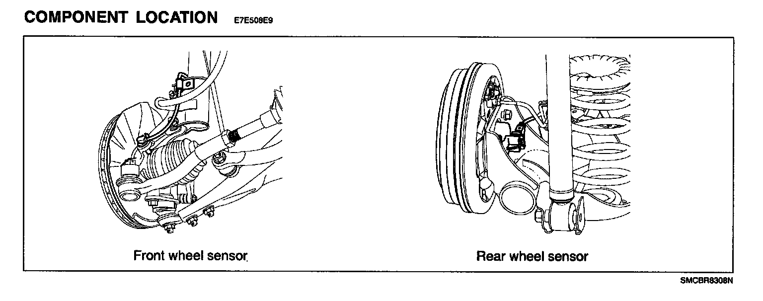 The wheel speed sensor is the essential component the ABS ECU uses to calculate vehicle speed and to determine whether wheel lock occurs. For example, rear wheel speed signal is used as a reference value, for vehicle speed, in front wheel drive vehicles, and if a difference between front and rear wheel speed occurs, then ABS control is performed. Wheel speed sensor is active hall-sensor type and good at temperature and noise tolerance. Digital wave is produced as tone wheel rotate according as hall sensor principle. Frequency of duty wave is changed in proportion to rotation of tone wheel and HECU calculate vehicle speed by this frequency.