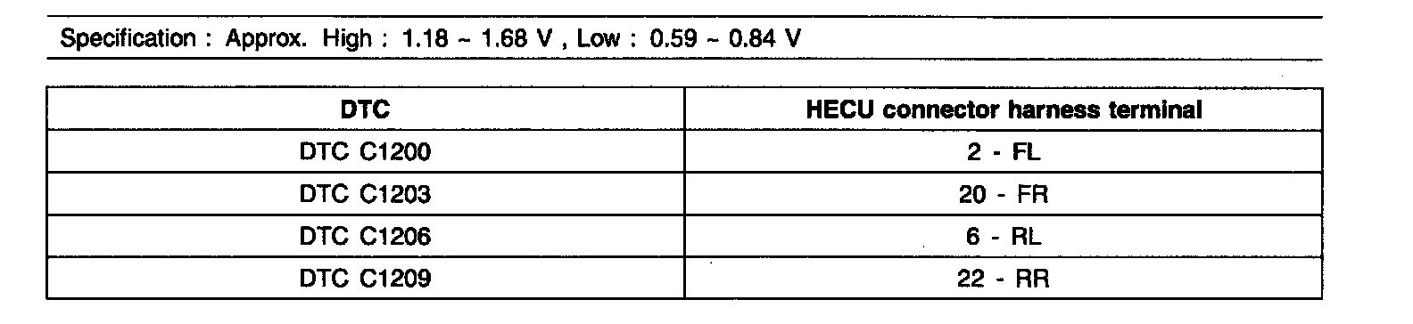 DTC C1200 WHEEL SPEED SENSOR FRONT-LH OPEN/SHORTDTC C1203 WHEEL SPEED SENSOR FRONT-RH OPEN/SHORT