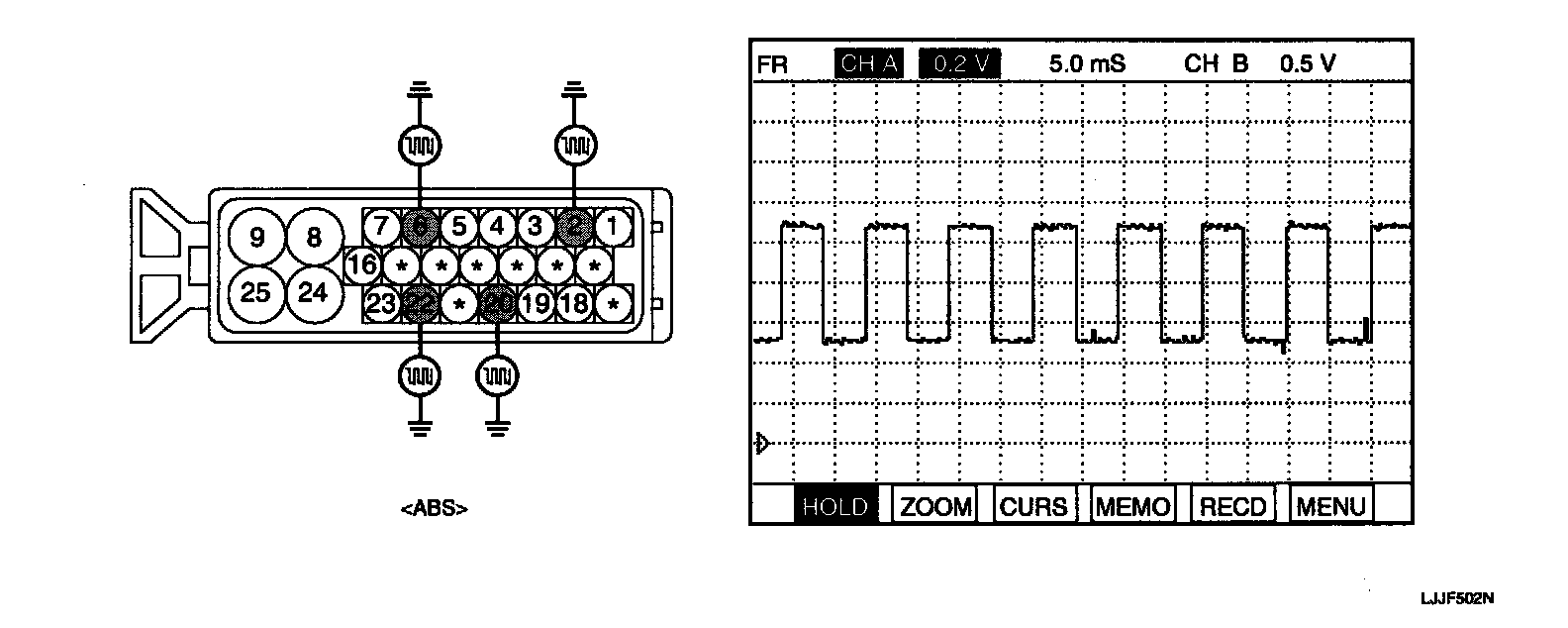 > Check for open or short to GND in wheel speed sensor harness between terminal 2" of the wheel speed sensor harness connector and terminal "2, 20, 6, 22" of the HECU harness connector. Repair as necessary and then go to "Verification of vehicle Repair" procedure.
