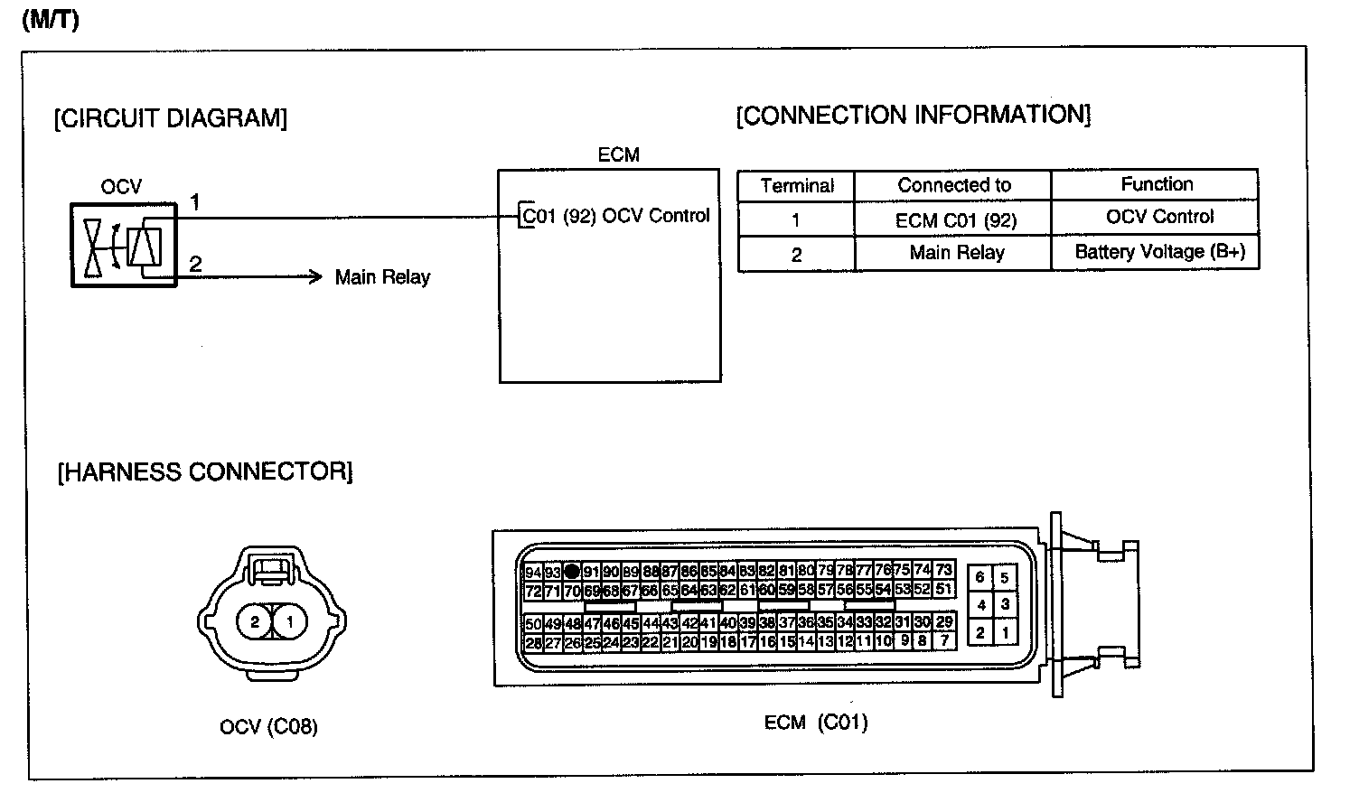 Different from the existing fixed cam phase angle type, CVVT (Continuously Variable Valve Timing) is the device which varies cam phase angle continuously to be optimum. And with engine oil pressure, it operates. CVVT consists of OCV (Oil Control Valve) and cam phaser. OCV, mounted on cylinder head, controls the amount and direction of oil delivered to cam phaser by oil valve which is connected to a solenoid. Cam phaser, rotating cam phaser rotor with pressure and amount of oil produced by OCV, rotates cam shaft forcefully for or against the rotating direction and finally, cam shaft phase changes.With the appliance of CVVT, engine power, fuel efficiency and the quality of exhaust gas are improved.