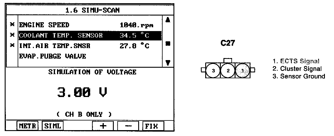 4. Simulate voltage at terminal 1 of ECTS signal connector.