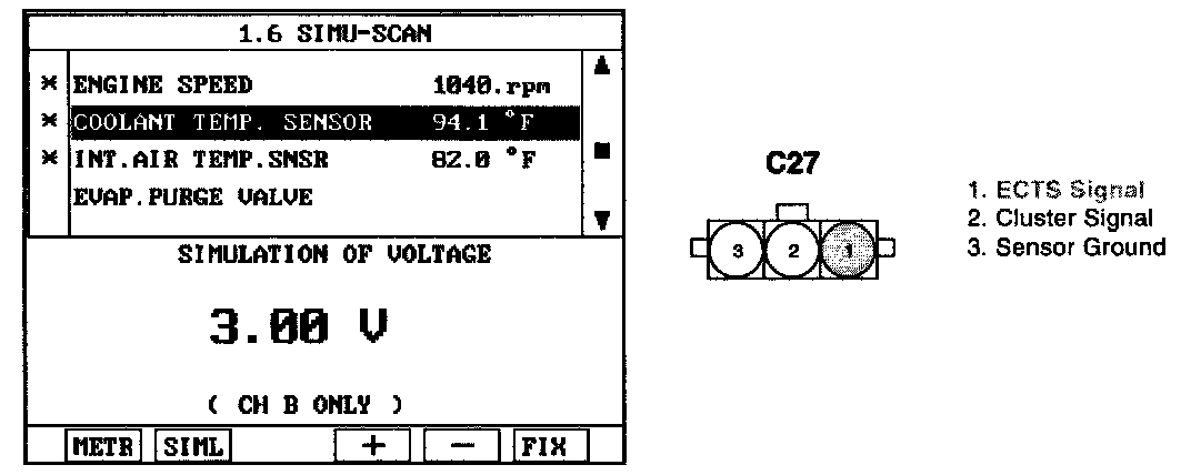 4. Simulate voltage at terminal 1 of ECTS signal connector.