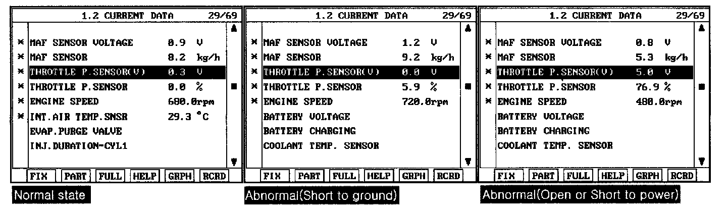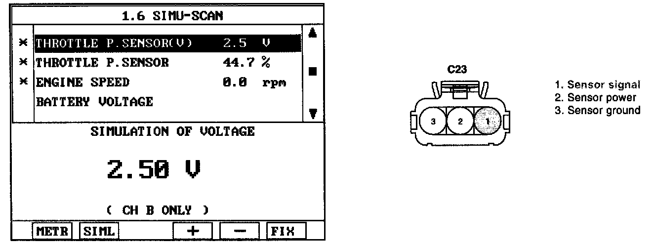 3. Connect channel A of scantool with terminal 1 of TPS harness connector, and key "ON".