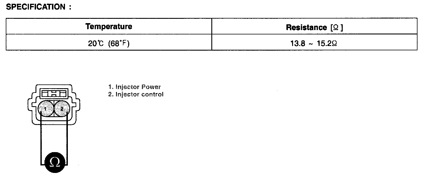 4. Measure resistance terminal 1 and 2 of lnjector connector (Component side).