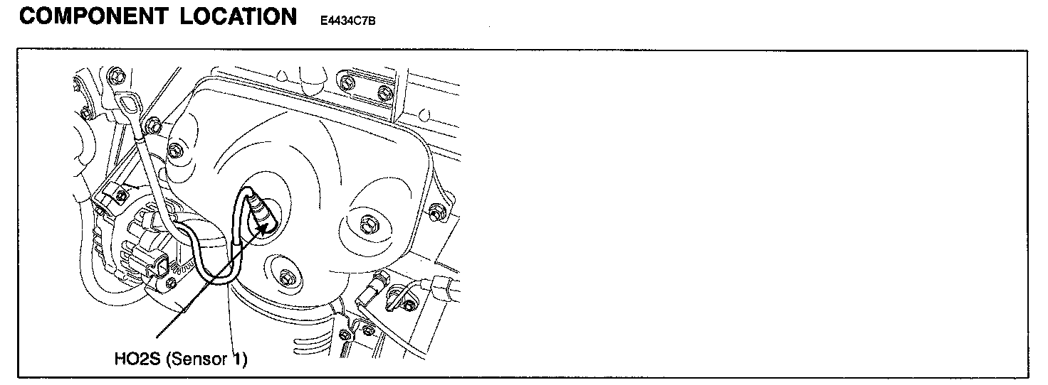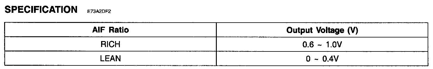 The heated oxygen sensors are mounted on the front side and the rear side of Catalytic Converter (warm-up catalytic converter), which detects the oxygen concentration in the exhaust gas. The front HO2S signal is used to control air/fuel ratio (closed loop fuel control) and the rear HO2S signal is used to monitor front HO2S and catalyst for proper operation. The heated oxygen sensor (HO2S) produces a voltage that varies between 0 V and 1 V. When the air/fuel ratio is lean, the oxygen concentration in the exhaust gas increases and the front HO2S outputs a low voltage (approximately 0 - 0.4 V). When the air/fuel ratio is rich, the oxygen concentration in the exhaust gas decreases and the front HO2S outputs a high voltage (approximately 0.6 - 1 V). The ECM/PCM constantly monitors the HO2S and increases or decreases the fuel injection duration by using the HO2S signal, which is called closed-loop fuel control operation.