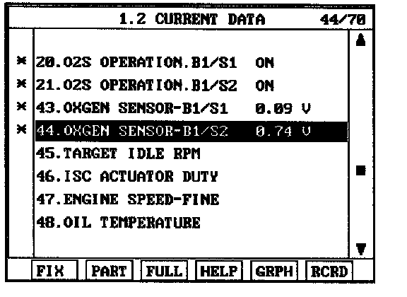 4. Is the "HO2S (B1S2)" parameter displayed correctly?