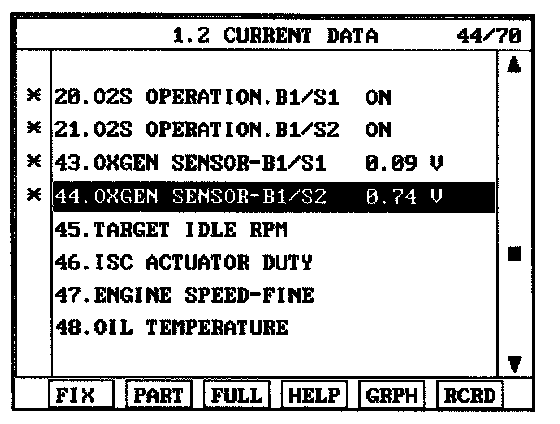 4. Is the "HO2S (B1S2)" parameter displayed correctly?