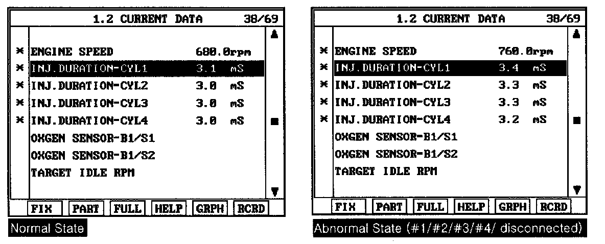 3. Monitor "injector" parameter on scantool.