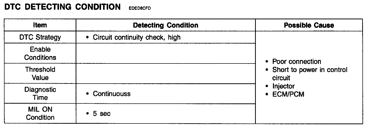 If there is Short to battery in injector #1/2/314 circuit, ECM/PCM sets DTC P0262/P0265/P0268/P0271.