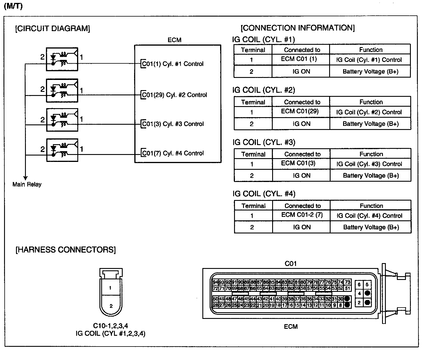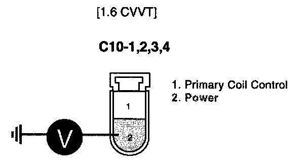 5. Measure the voltage between terminal 2 of ignition coil #1, #2, #3, #4 harness connector and chassis ground.