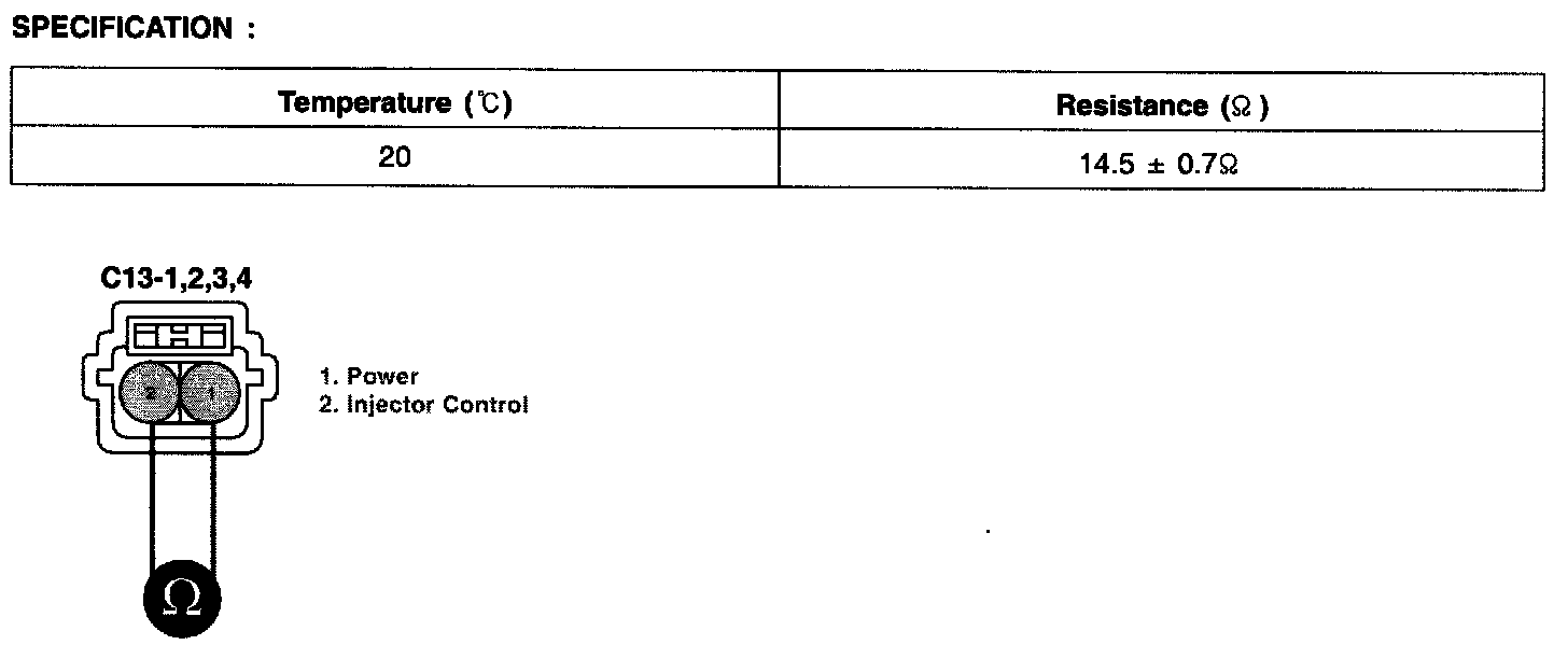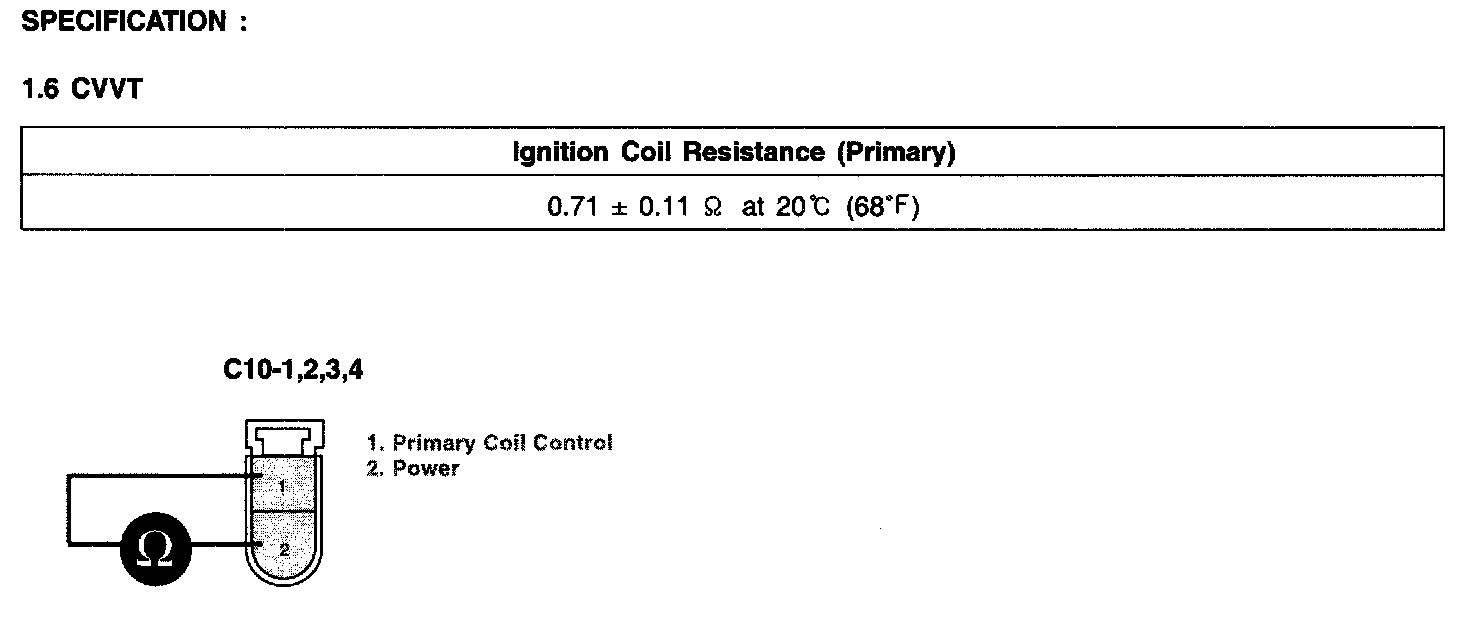 1. Measure the resistance between terminal 1 and 2 of ignition coil connector #1, #2, #3, #4. (Component side / Primary coil)
