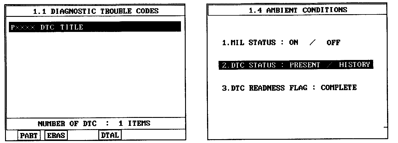 3. Select "Diagnostic Trouble Codes (DTCs)" mode, and then Press F4 (DTAL) to check DTC's information from the DTCs menu.