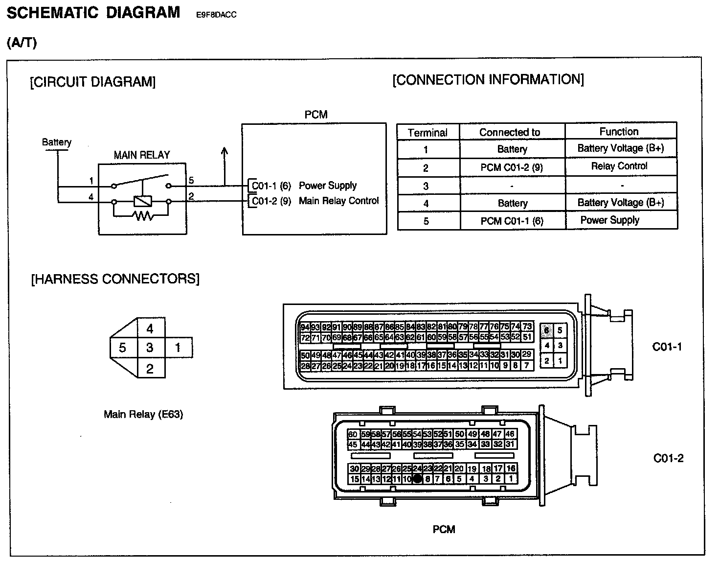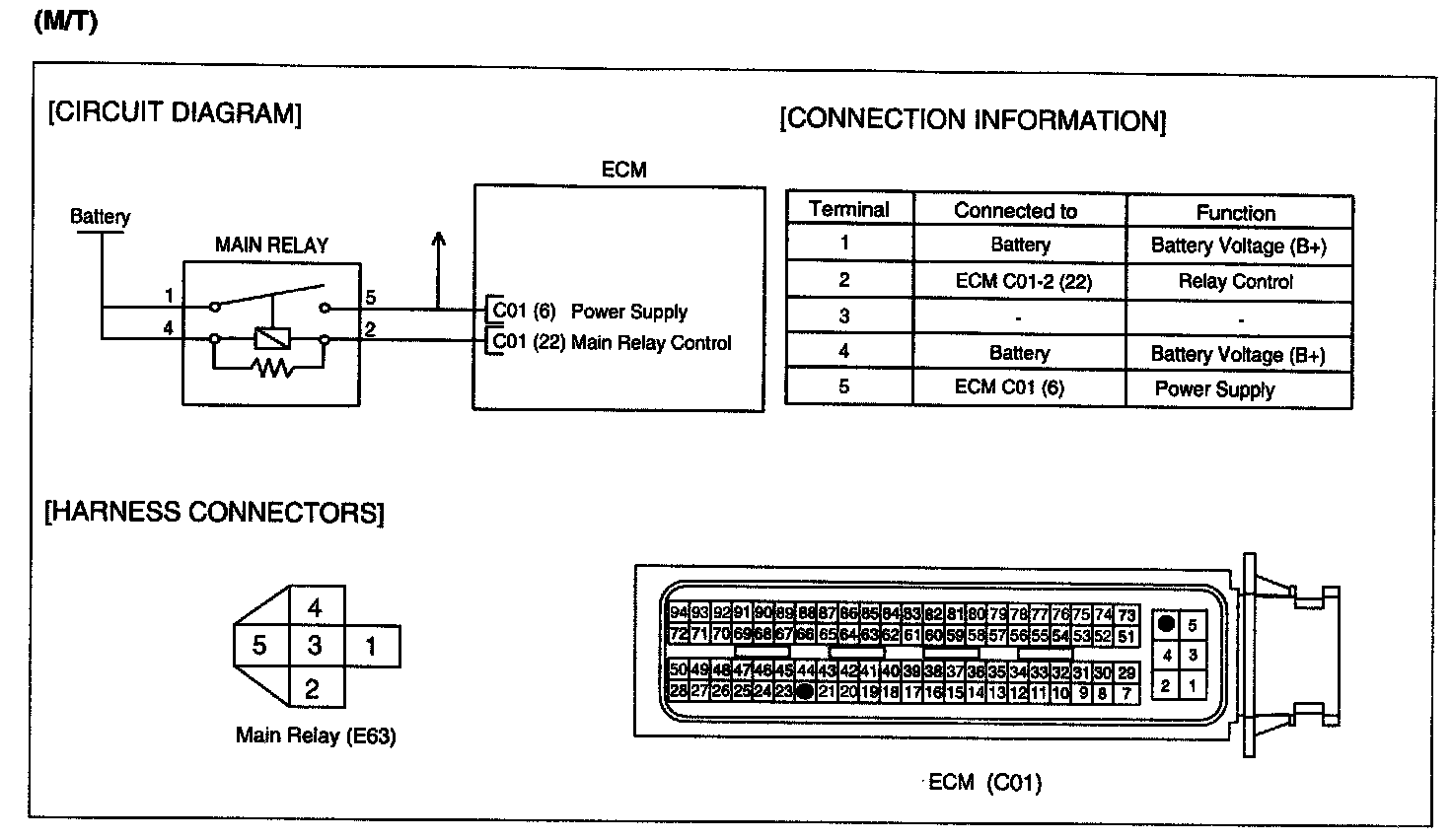 2. Disconnect main relay and ECM/PCM connector.