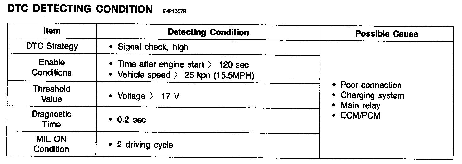 If the system voltage is over 17 V during 0.2 sec, ECM/PCM sets DTC P0563.