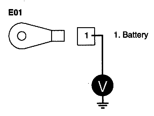 4. Measure the voltage between terminal 1/E01 of alternator harness connector and chassis ground.