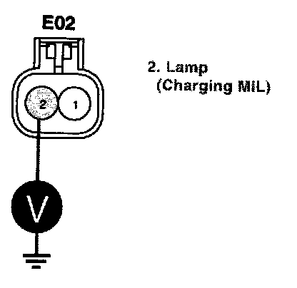 Measure the voltage between terminal 2/E02 of alternator harness connector and chassis ground.