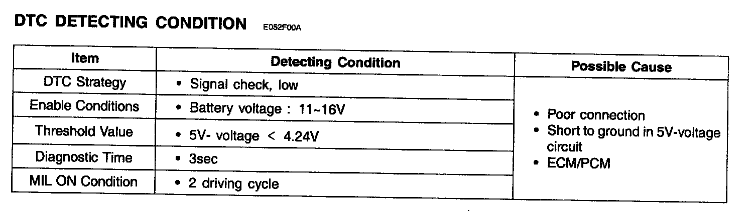 The 5 V reference line is monitored for malfunctions that could result in improper sensor operation.
