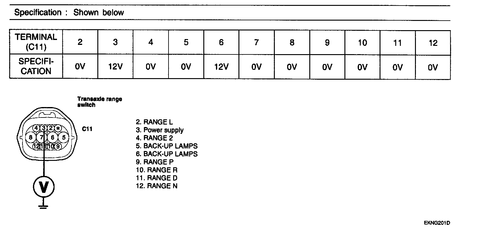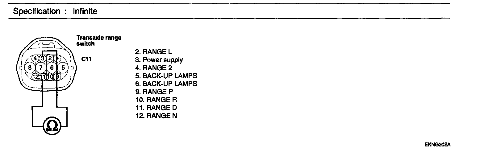 1. Disconnect "TRANSAXLE RANGE SWITCH" connector.