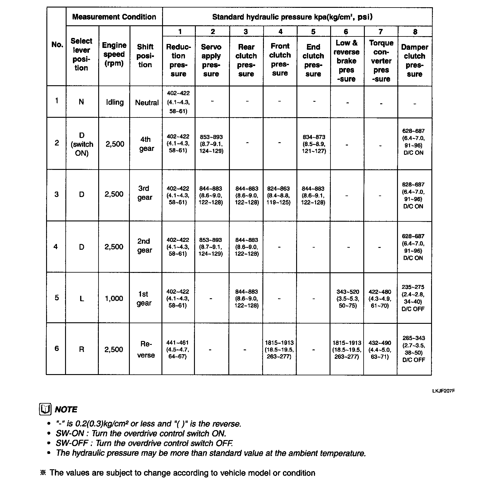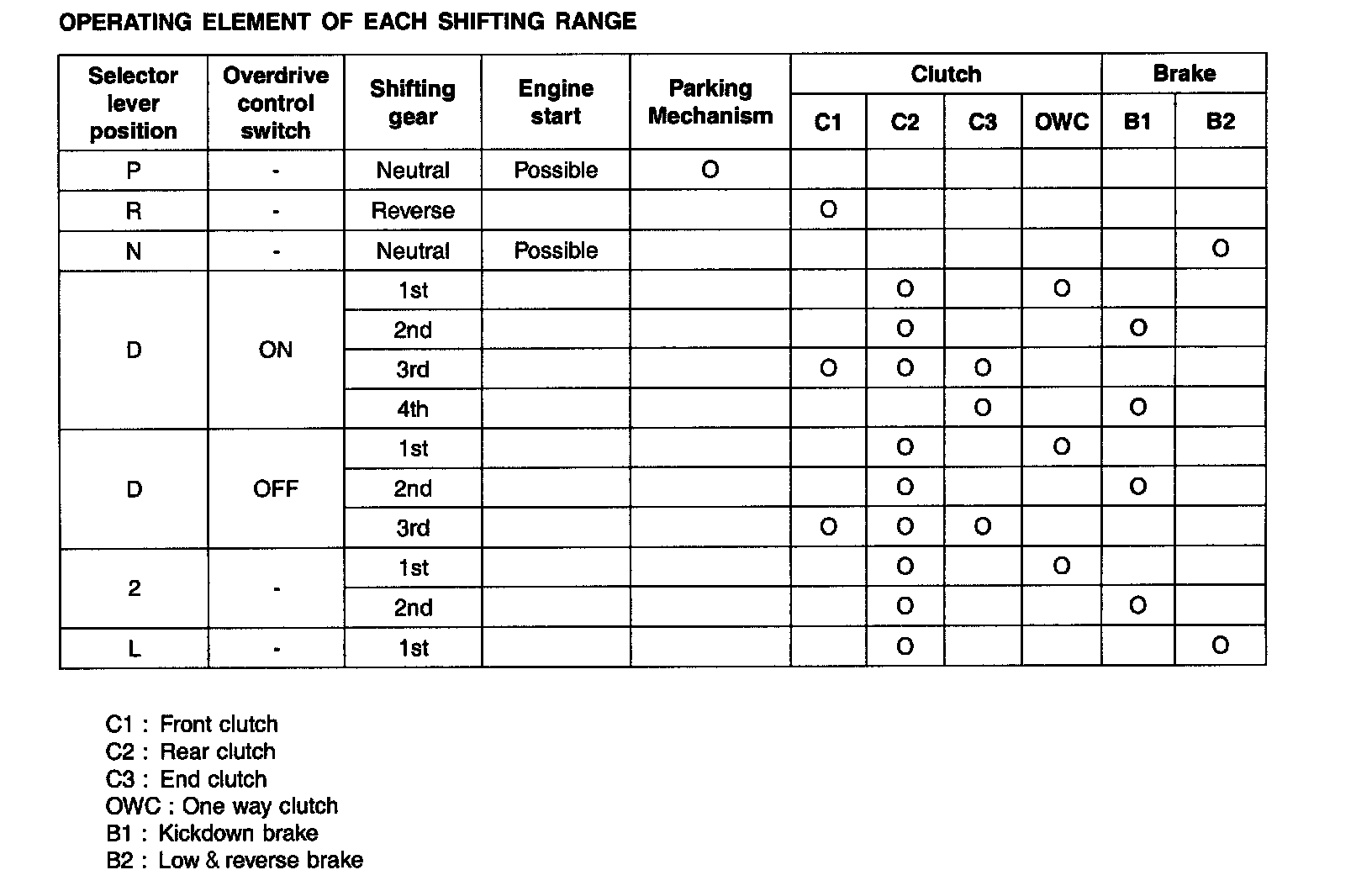 ^ The slippage of 1st gear operating parts can be detected by stall test in D1.
