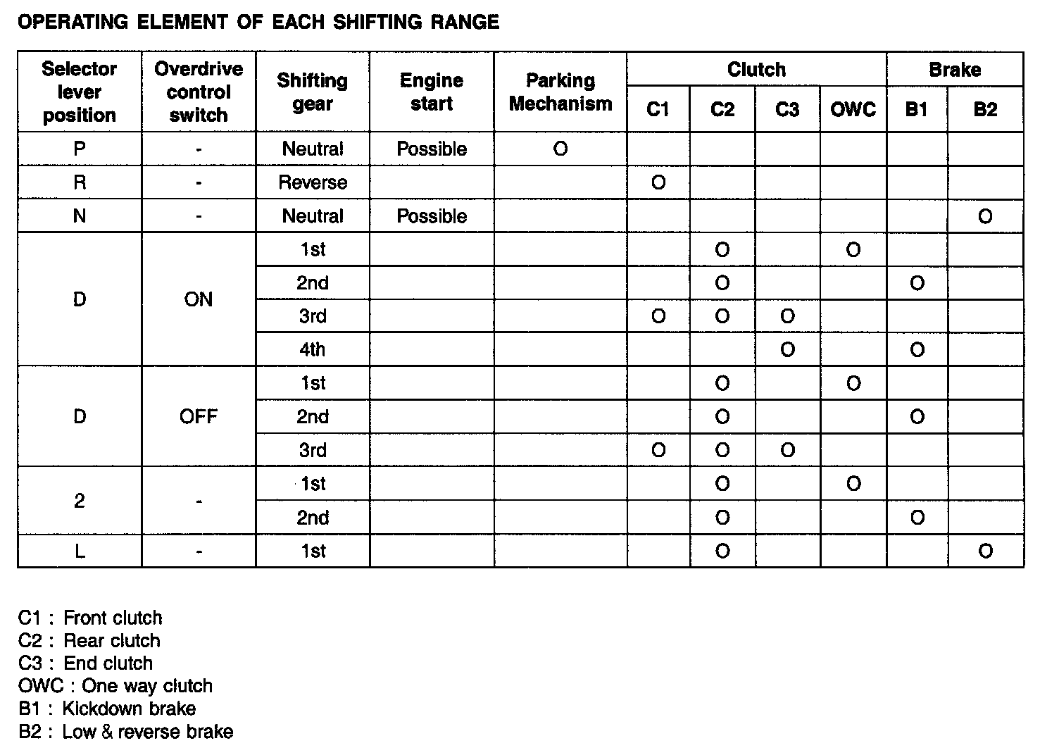 OPERATING ELEMENT OF EACH SHIFTING RANGE: