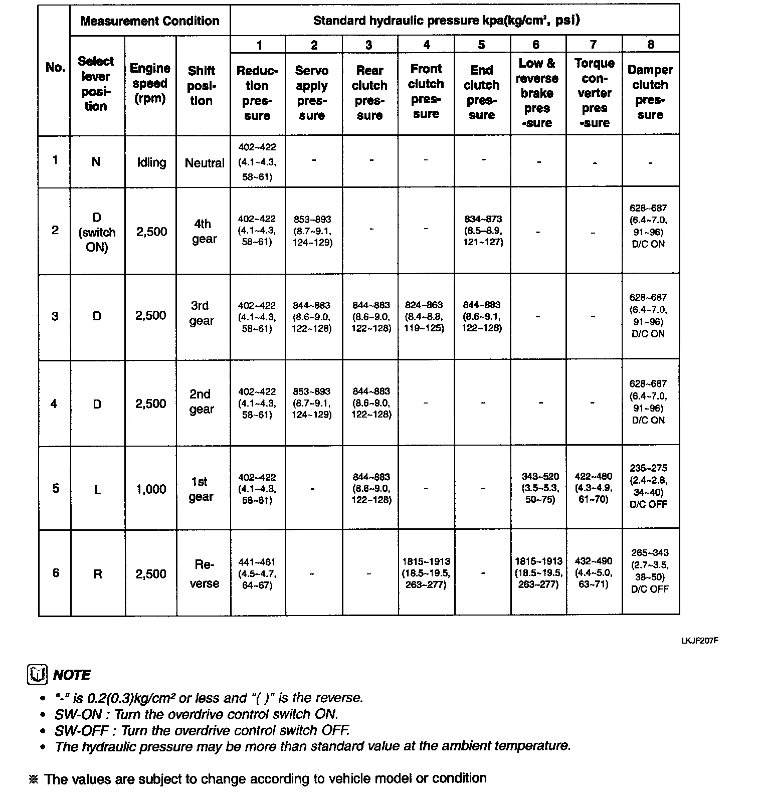 ^ The values are subject to change according to vehicle model or condition