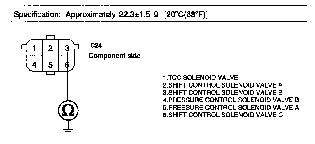 1. Disconnect "A/T SOLENOID VALVE" connector.