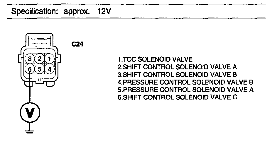 The PCM checks the Shift Control Solenoid Valve C control signal by monitoring the feedback signal from the solenoid valve drive circuit. If an unexpected signal is monitored, (For example, high voltage is detected when low voltage is expected, or low voltage is detected when high voltage is expected) the PCM judges that SCSV C control solenoid circuit is malfunctioning and sets this code.