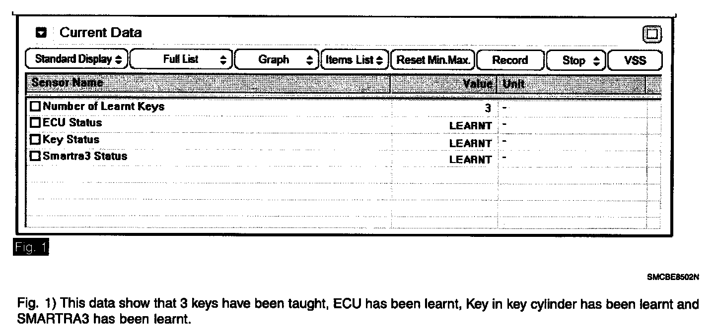 3. Monitor the "ECU, KEY and Smartra STATUS" Parameter on the Scantool.