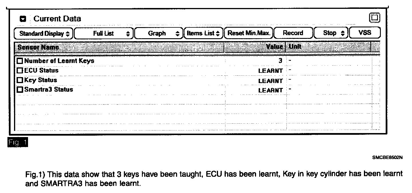 2. Monitor the "ECU, KEY and Smartra STATUS" Parameter on the Scantool.