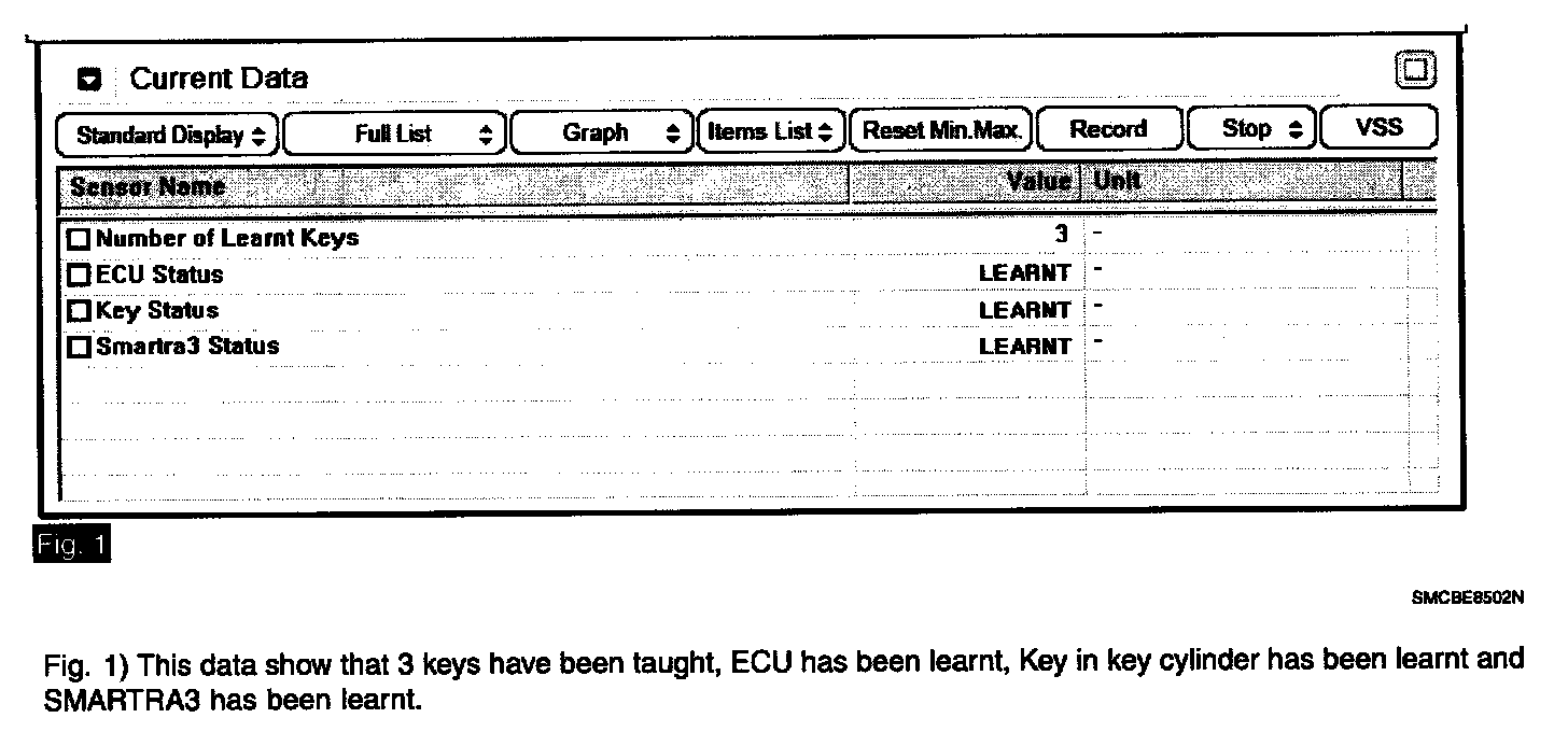 3. Monitor the "KEY STATUS", "SMARTRA STATUS" and "ECU STATUS" Parameter on the Scantool.