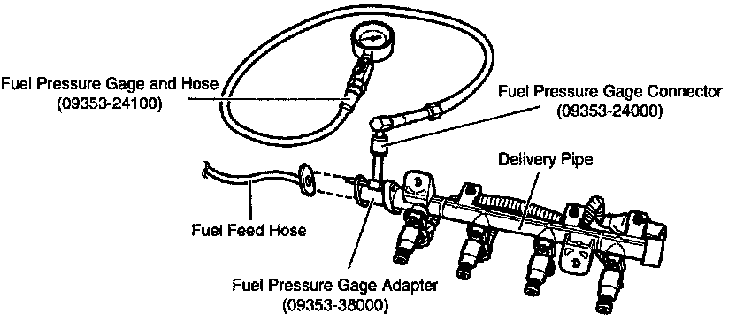 5. Connect fuel pressure gauge using the correct adapter.