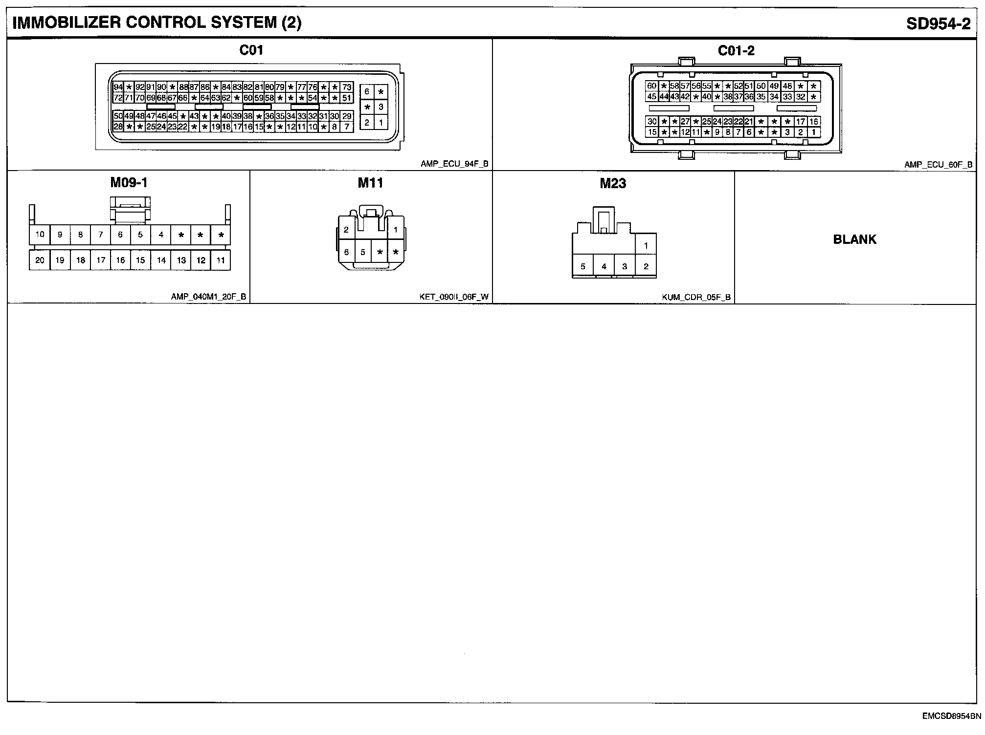 Immobilizer Control System Connector Pin Outs: