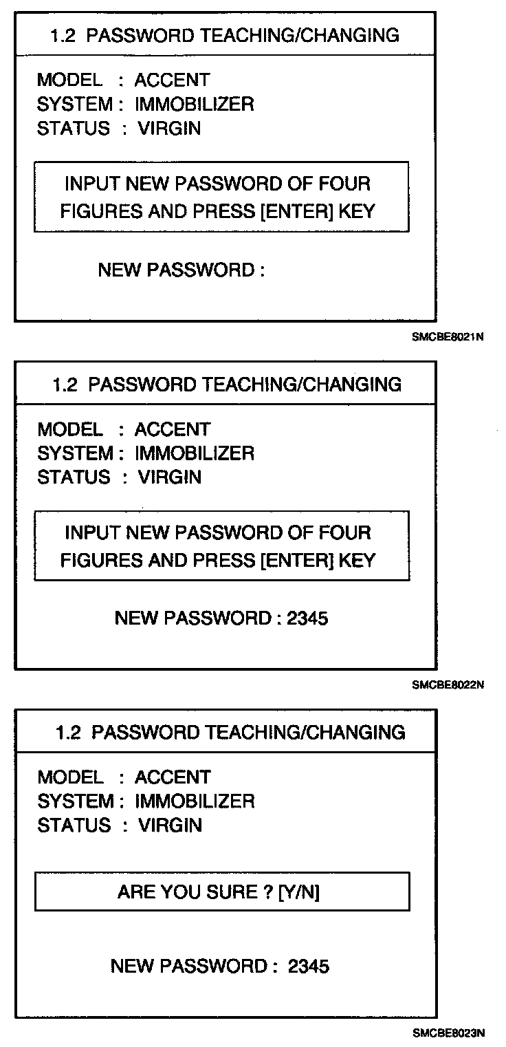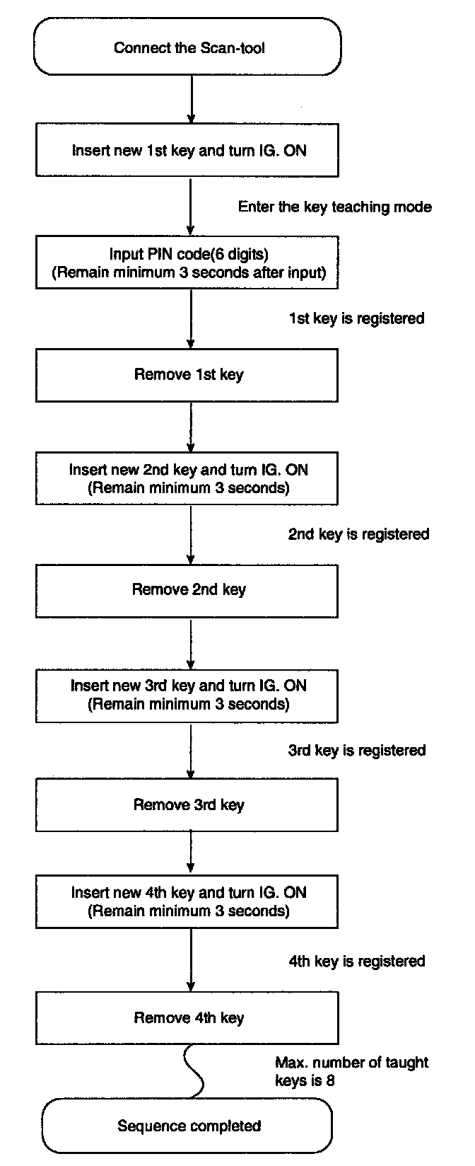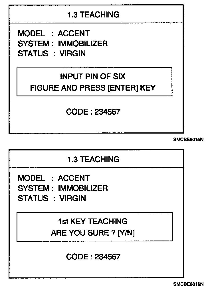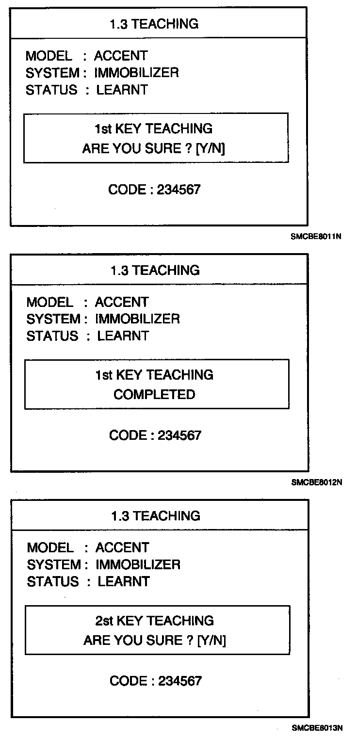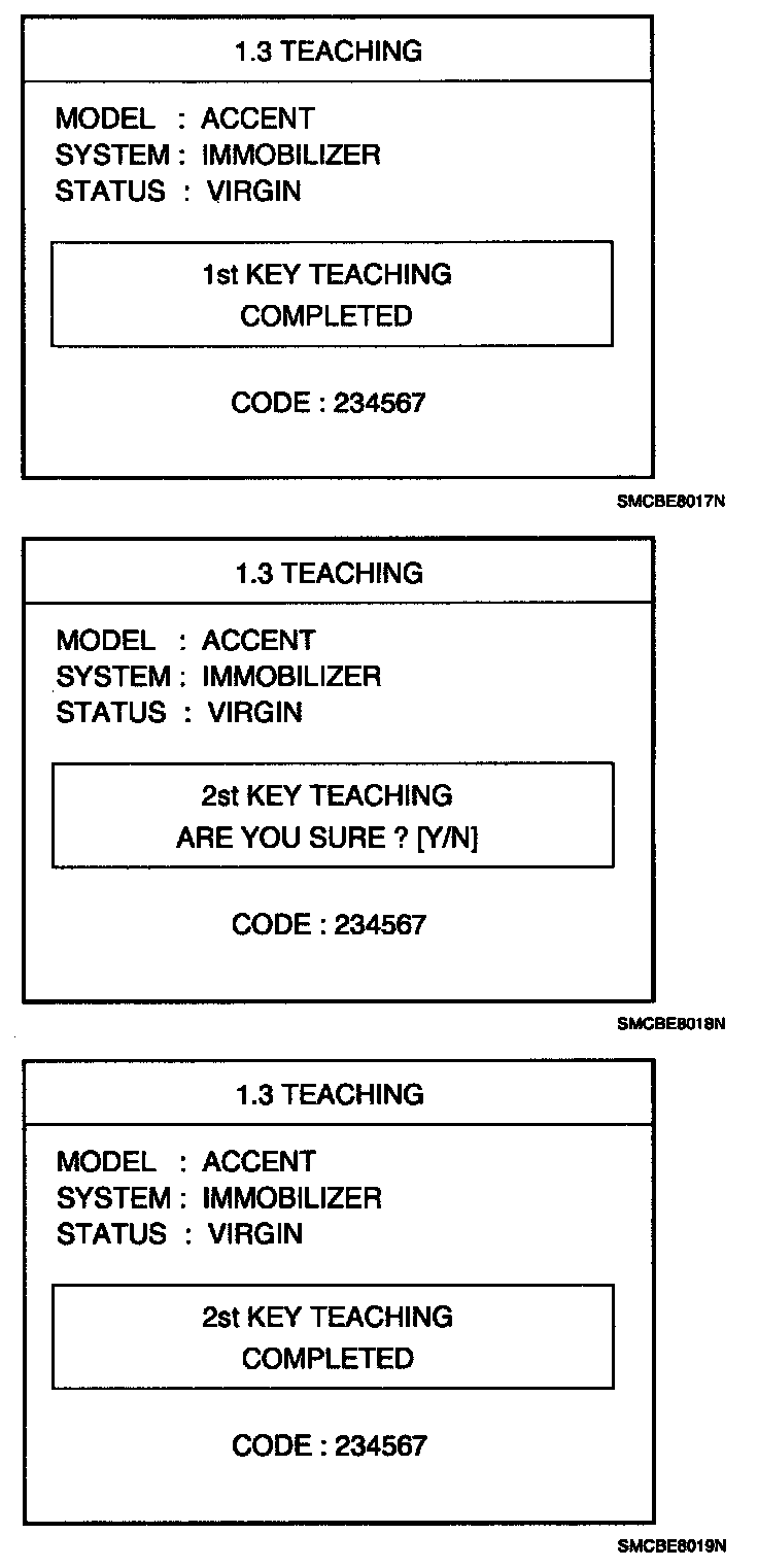 If the PCM (ECM) status and the key status do not match for teaching of keys, the tester procedure will be stopped and a specific fault code will be stored at PCM (ECM).