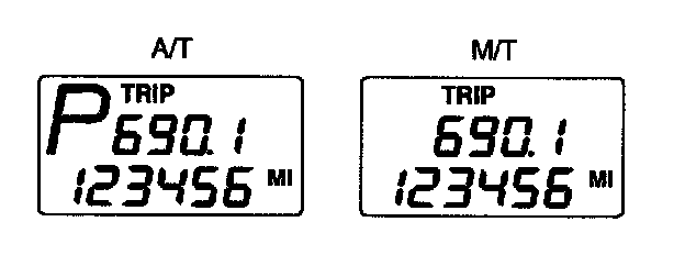 Pushing in the TRIP switch for less than 1 second when the ignition switch is in "ON" position changes the display as follows.