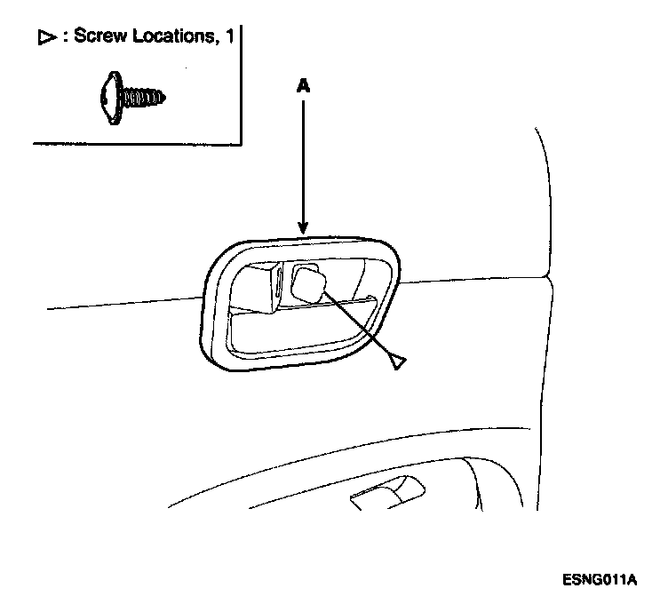 2. After loosen the inside handle cover mounting screw, remove the inside handle cover (A).