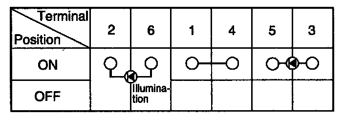 3. Check for continuity between the terminals in each switch position according to the table.