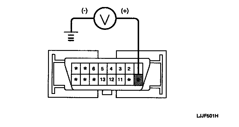 Measure the voltage between terminal 9 of the data link connector and body ground.