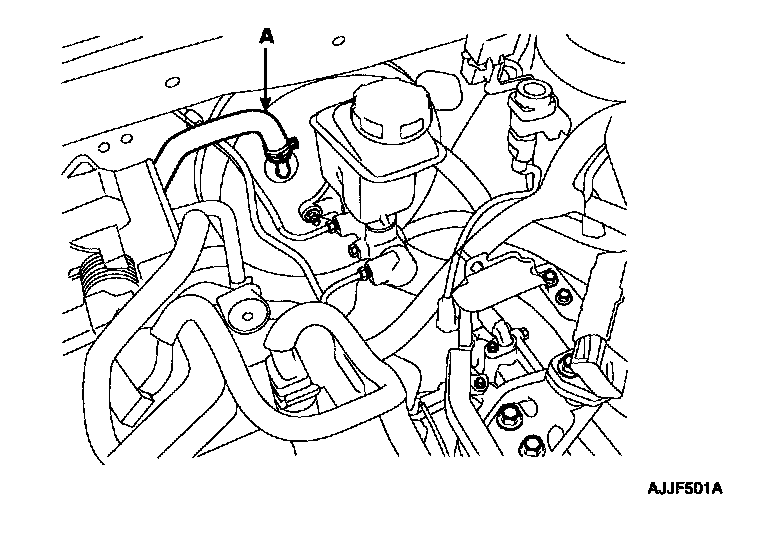 1. Disconnect the brake booster vacuum hose (check valve built in) (A) at the booster.