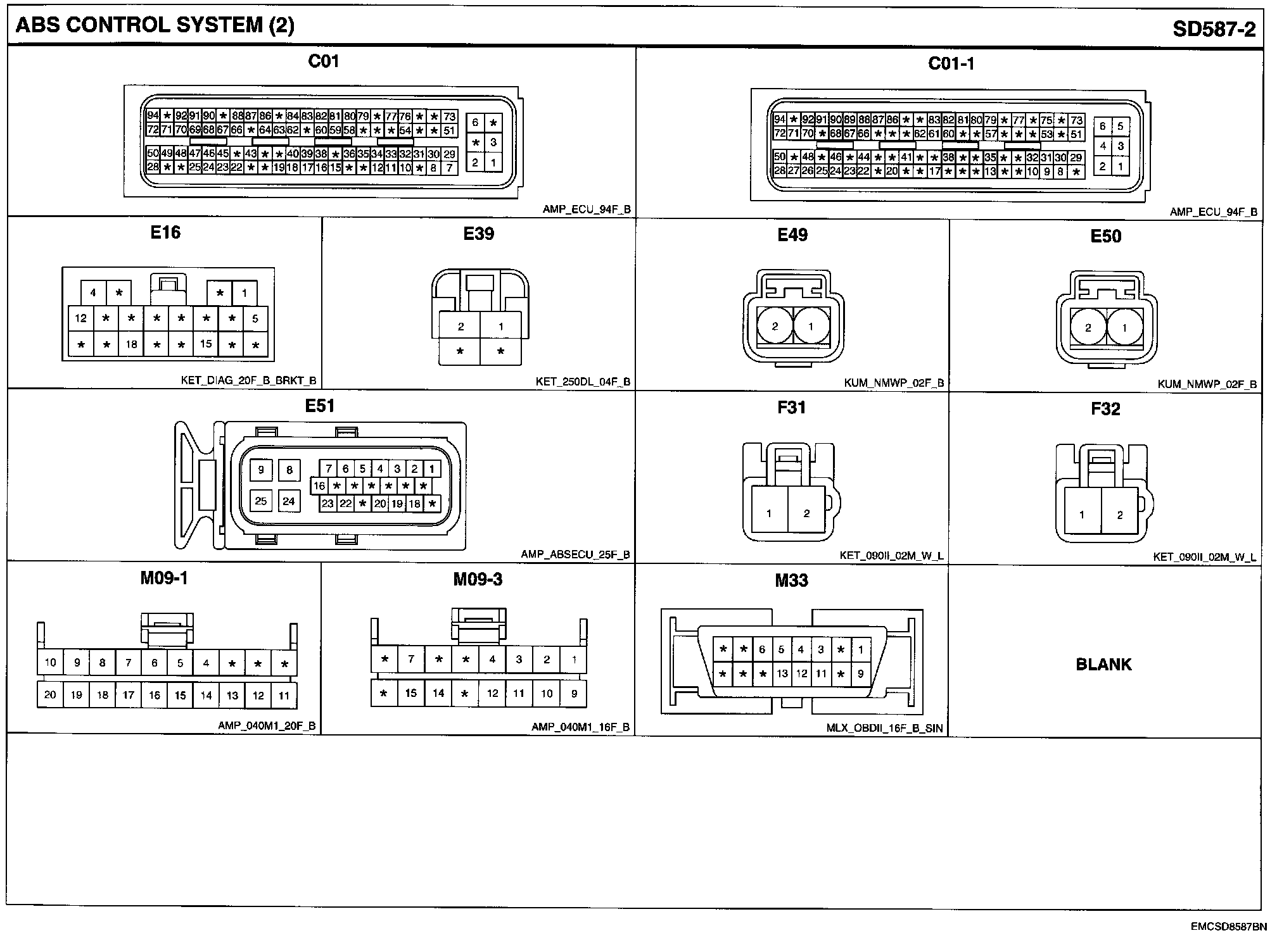 ABS Control System Connector Pin outs: