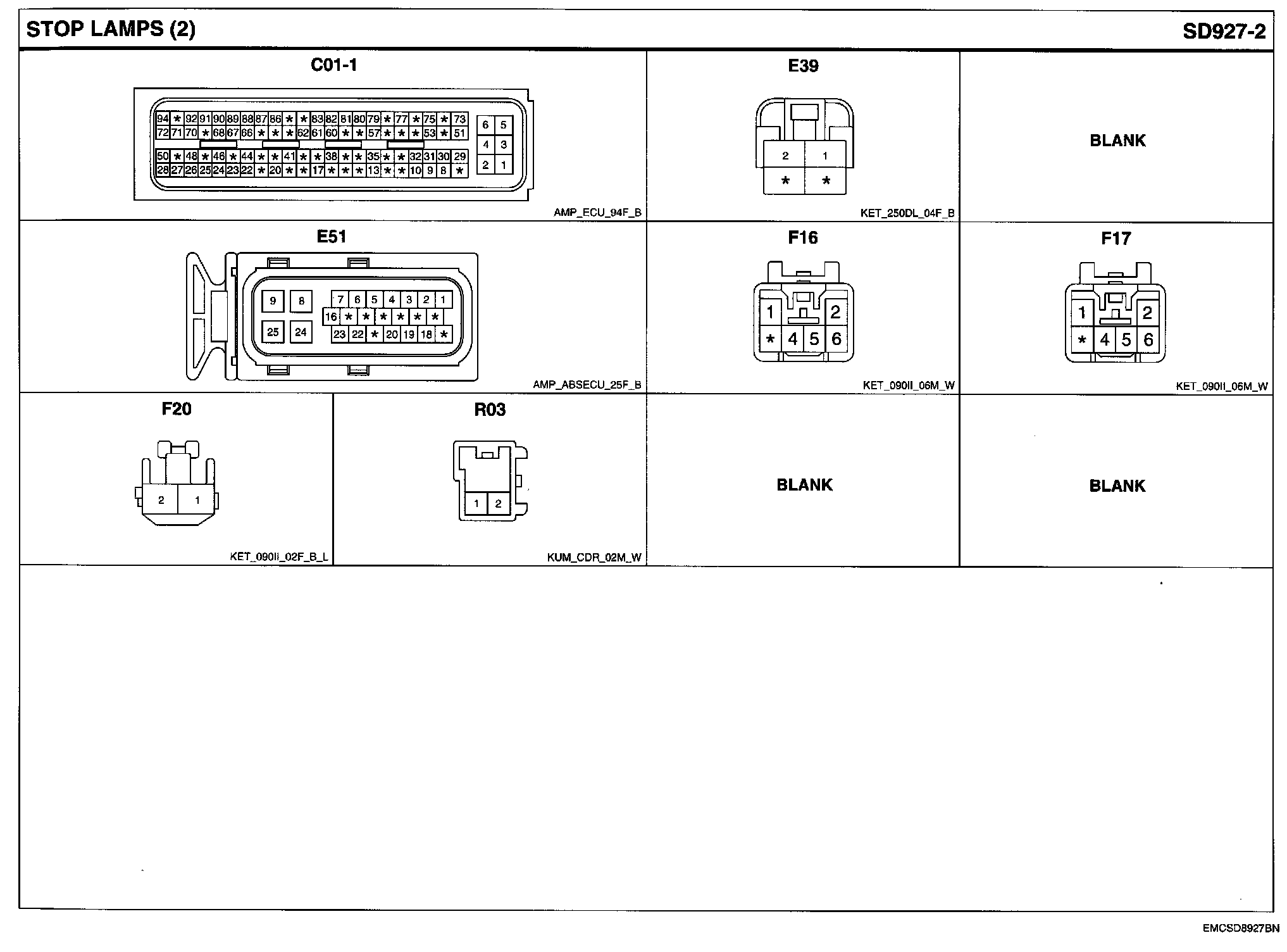 Stop Lamps Connector Pin Outs:
