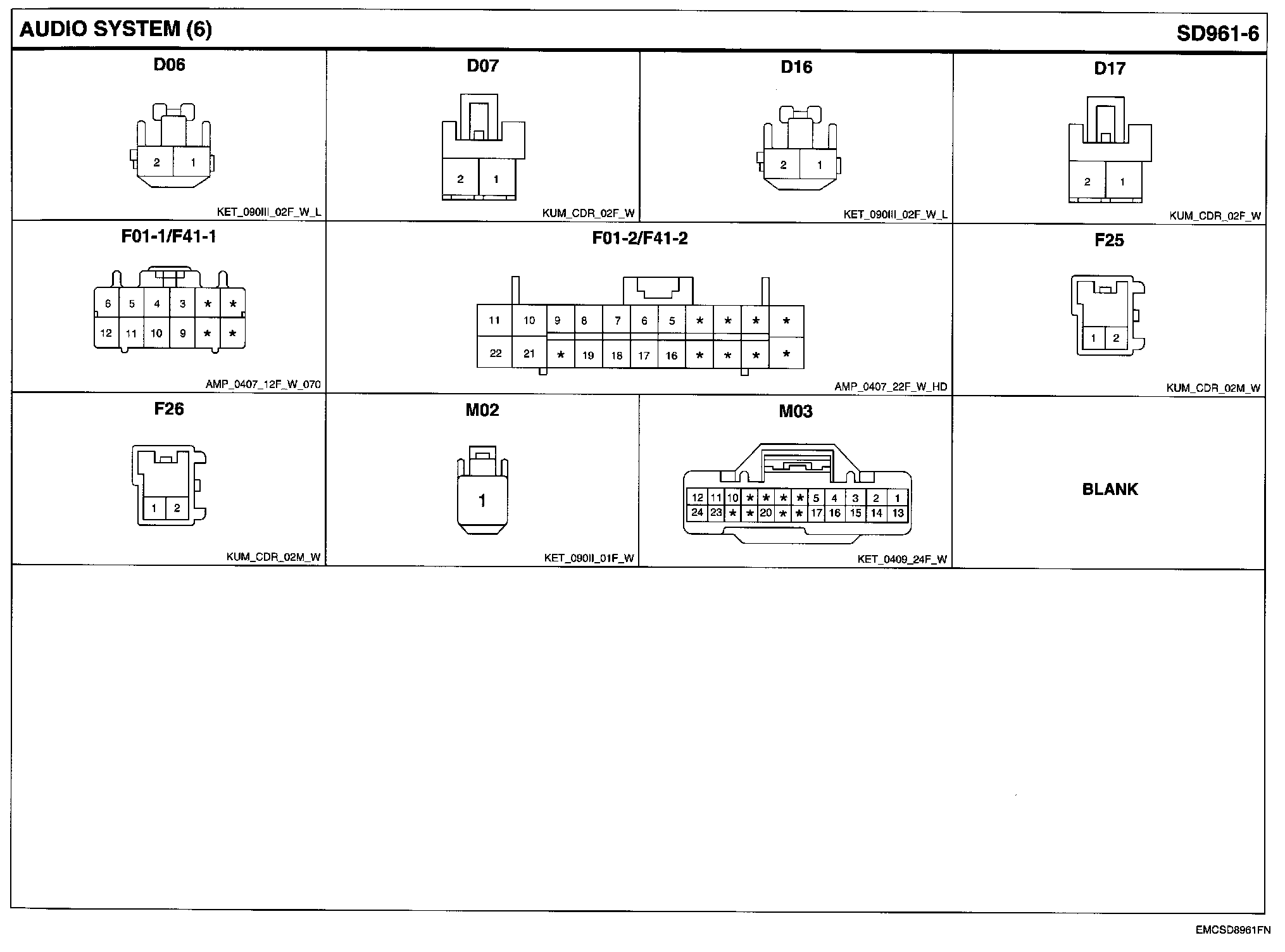 Audio System Connector Pin Outs: